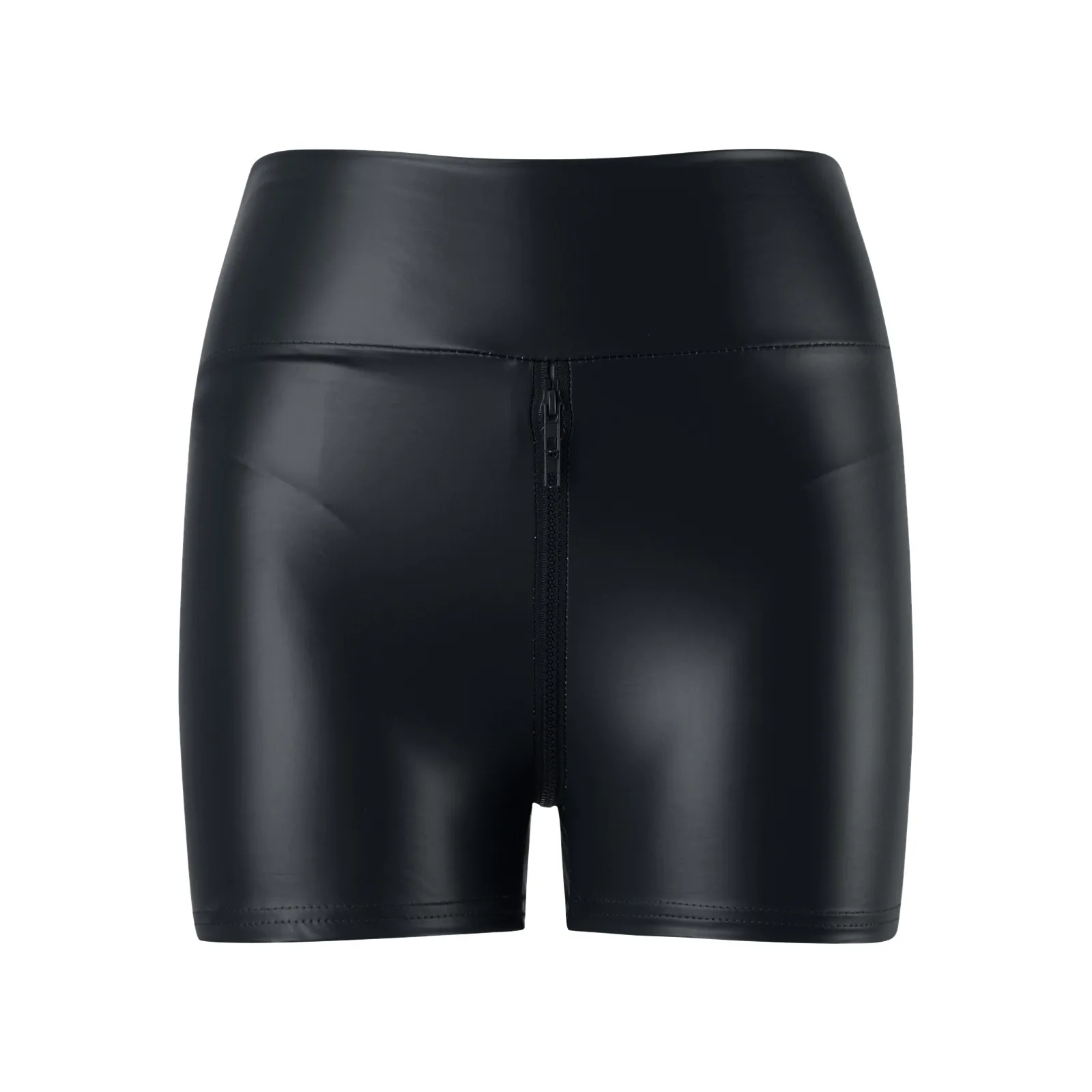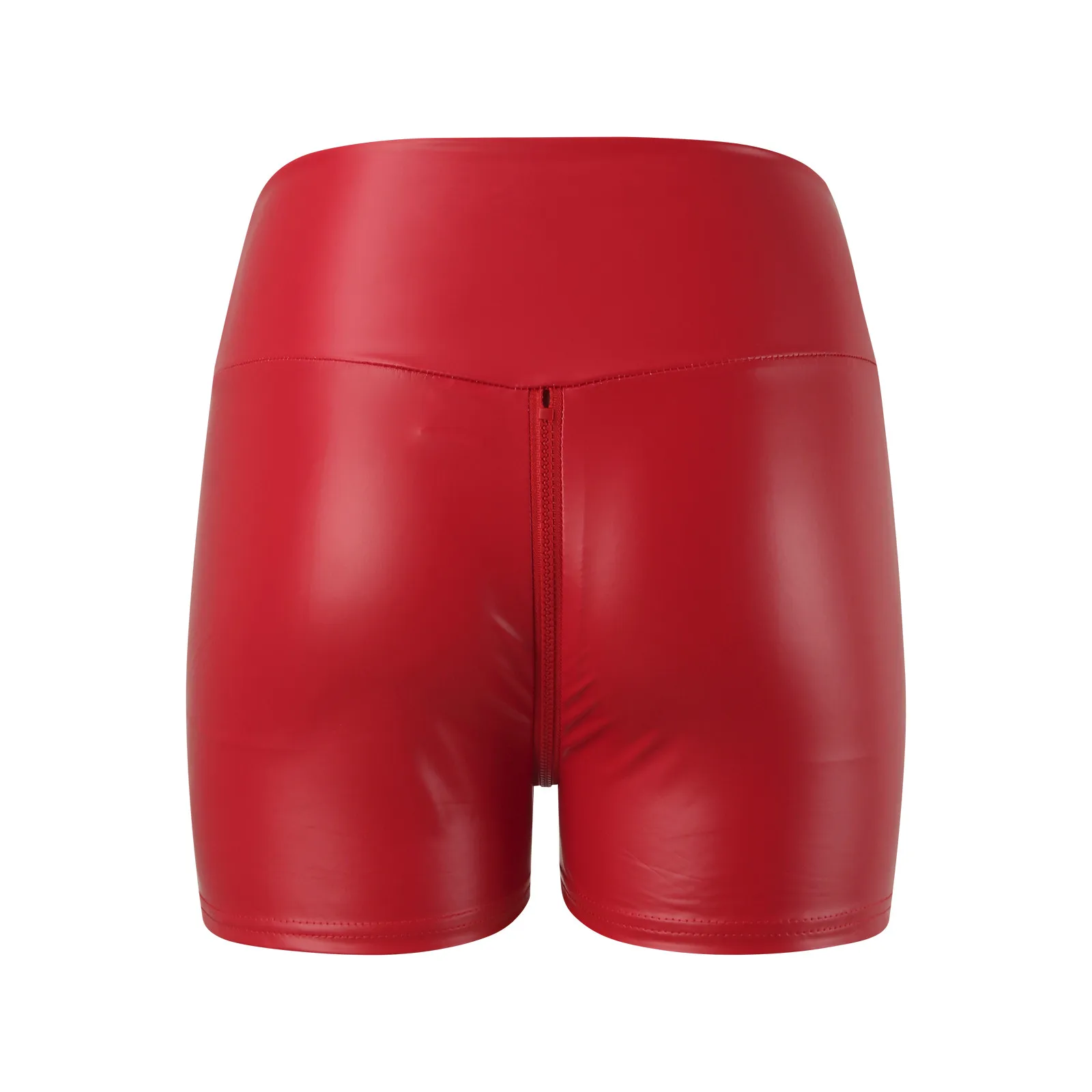 Faux Pants Leggings Stretch Waisted Womens High Leather Pleather Pants Zip Open Crotch Short Pants
